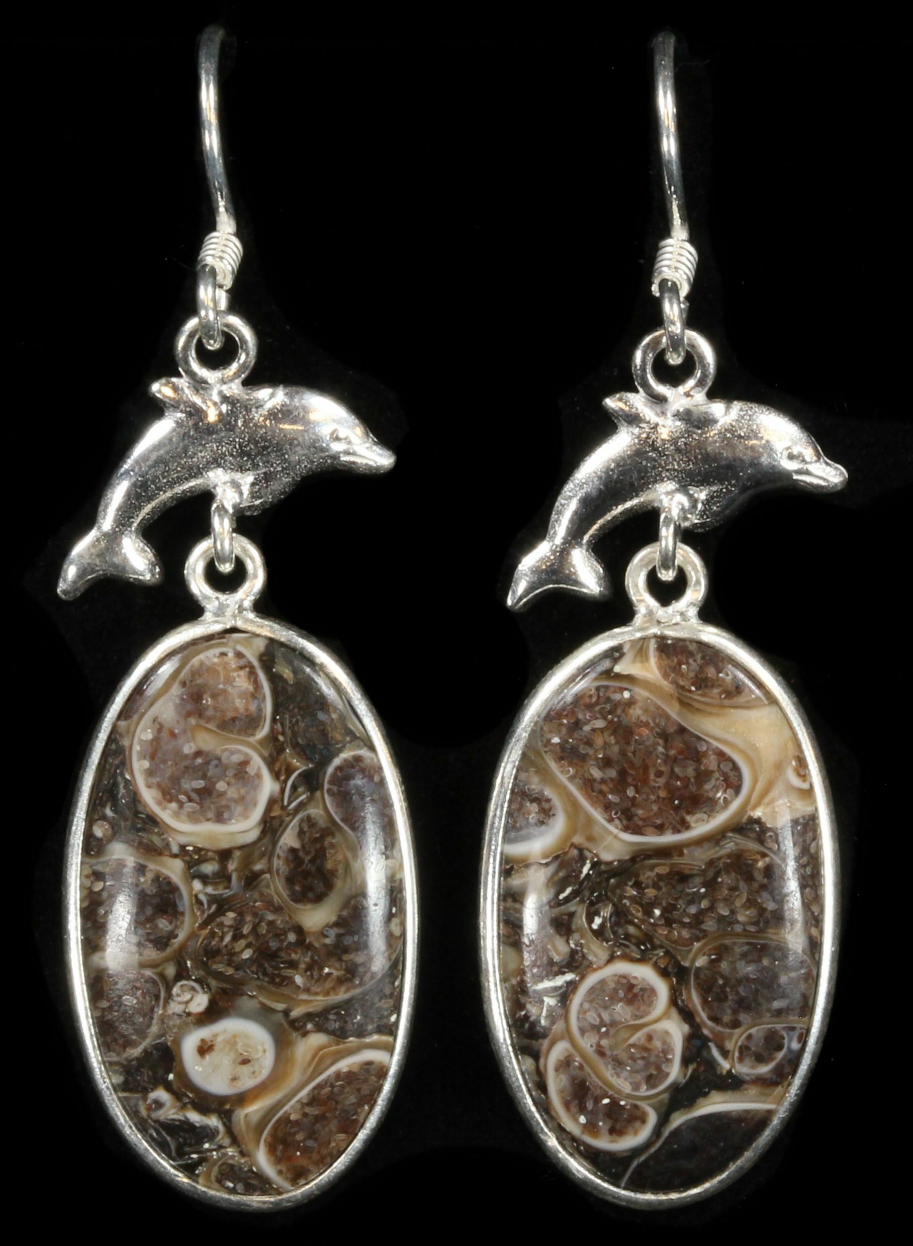 This is a pair of beautiful earrings made from polished, agatized gastropod (snail) fossils from Wyoming. The setting on this earrings is sterling silver.