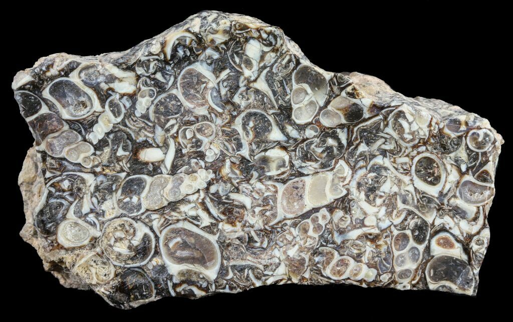 This is a 3" wide, polished specimen of fossiliferous "Turritella agate" .