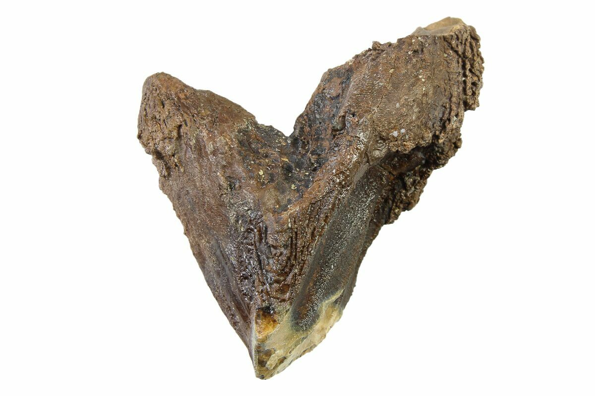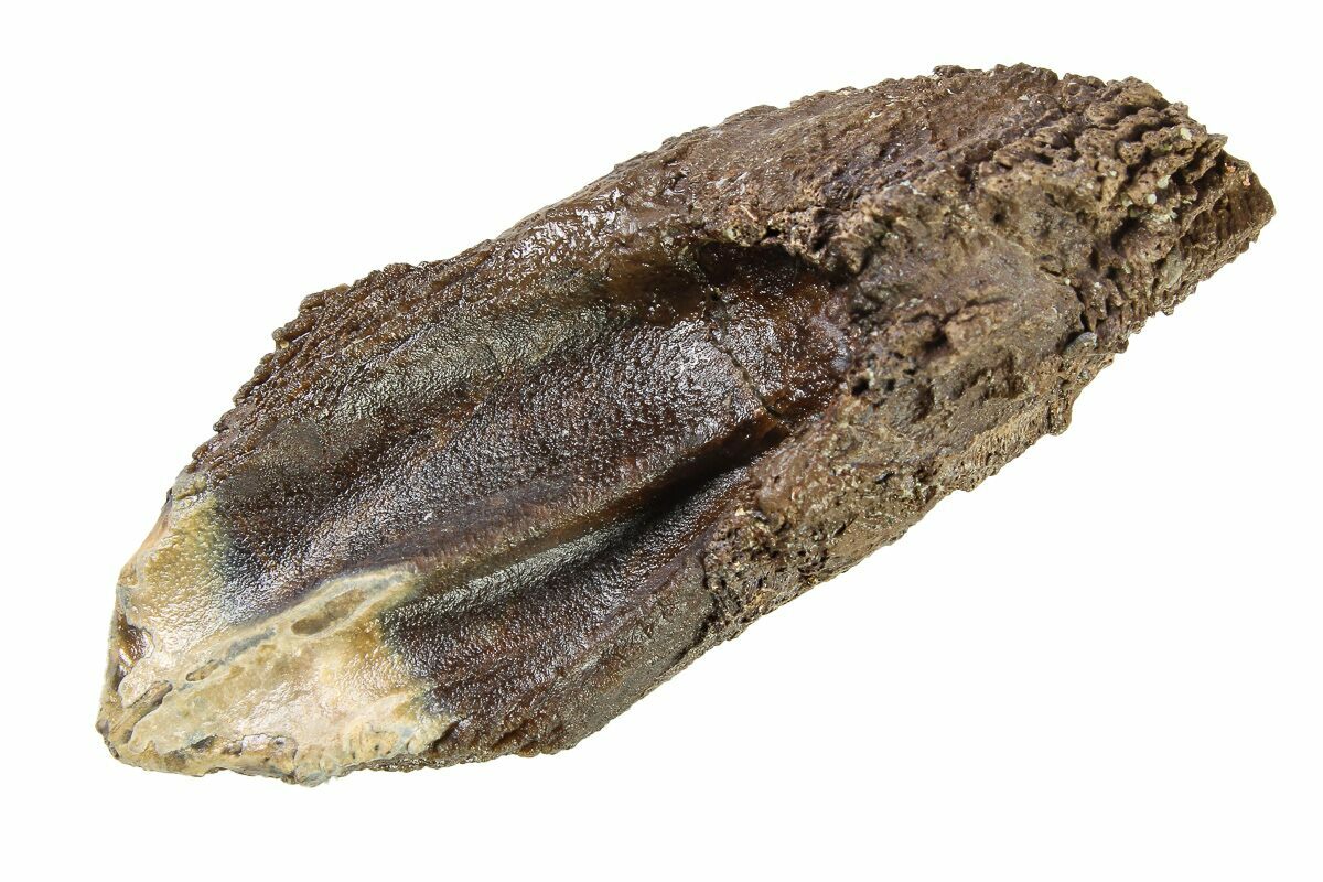 This is an absolutely gorgeous, 1.82" long rooted Triceratops horridus tooth. It was collected from the Hell Creek Formation in Montana. Triceratops is one of the most iconic dinosaurs, recognizable by almost everyone. The vast majority of teeth found are worn teeth that are discarded during the dinosaur's lifetime. This tooth has a nearly complete root and no feeding wear, making it a much more uncommon find.