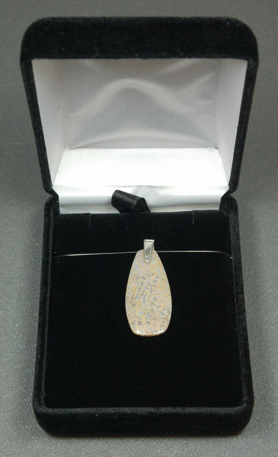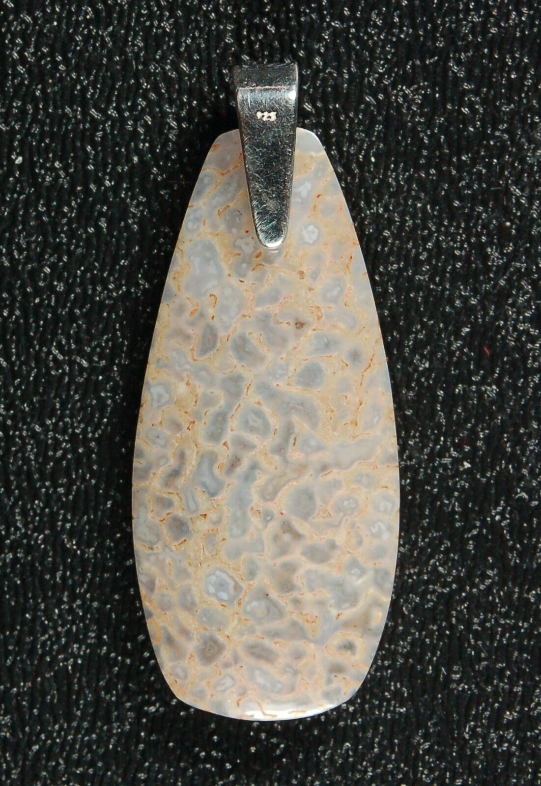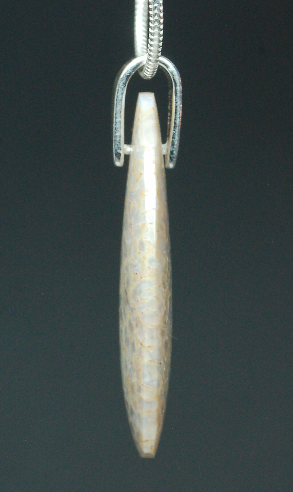 This is a stunning, light colored, hexagonal pendant hand crafted from 150 million year old, agatized dinosaur bone (gembone) by master stone craftsman, Kenneth Kolb. The quality of the gembone is exceptional with great color and patterning.