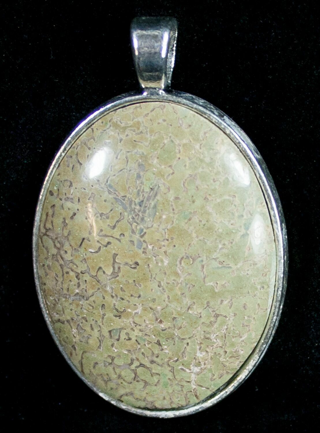 This is a beautiful pendant made from 150 million year old, red, agatized dinosaur bone. It was handcrafted in Utah.. The internal cell structure of the dinosaur bone can clearly be seen. Only high grade, gem quality bone was used in the pendants.