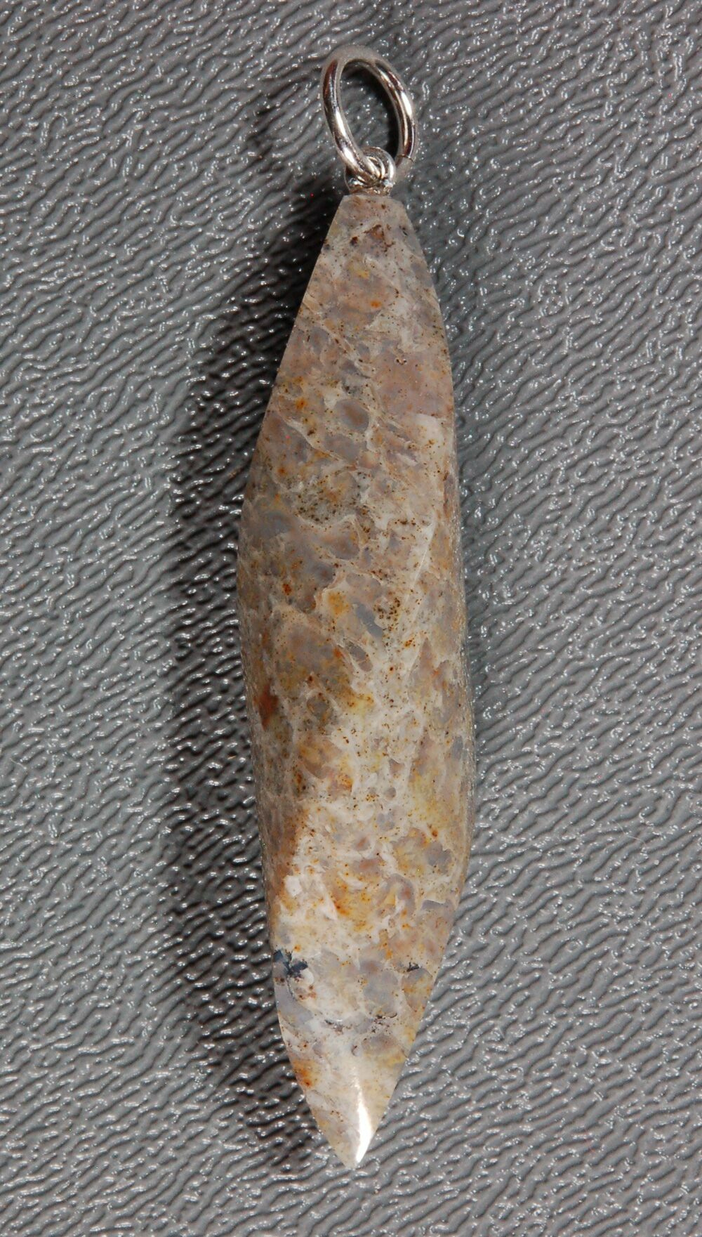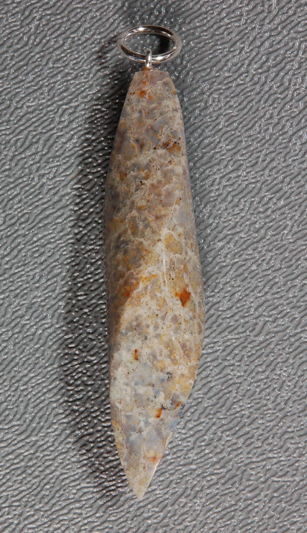 This is a gorgeous twist pendant hand crafted from 150 million year old, agatized dinosaur bone (gembone) by master stone craftsman, Kenneth Kolb. This one of a kind pendant is 2" x 7/16"