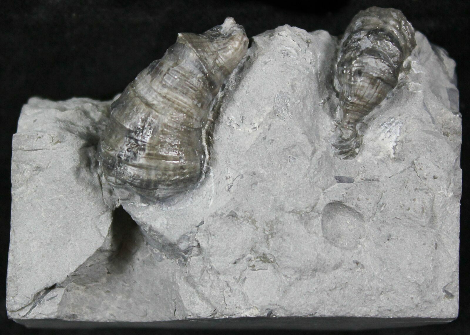 This is a plate of two fossil horn coral (Stereolasma rectum) from the Windom Shale of NY. It's Devonian in age, or approximately 385 million years old. It has been prepared under microscope using air abrasives to reveal all of the surface detail. The rock underneath it has been sawed up so it stands up on a flat surface and displays quite nicely.