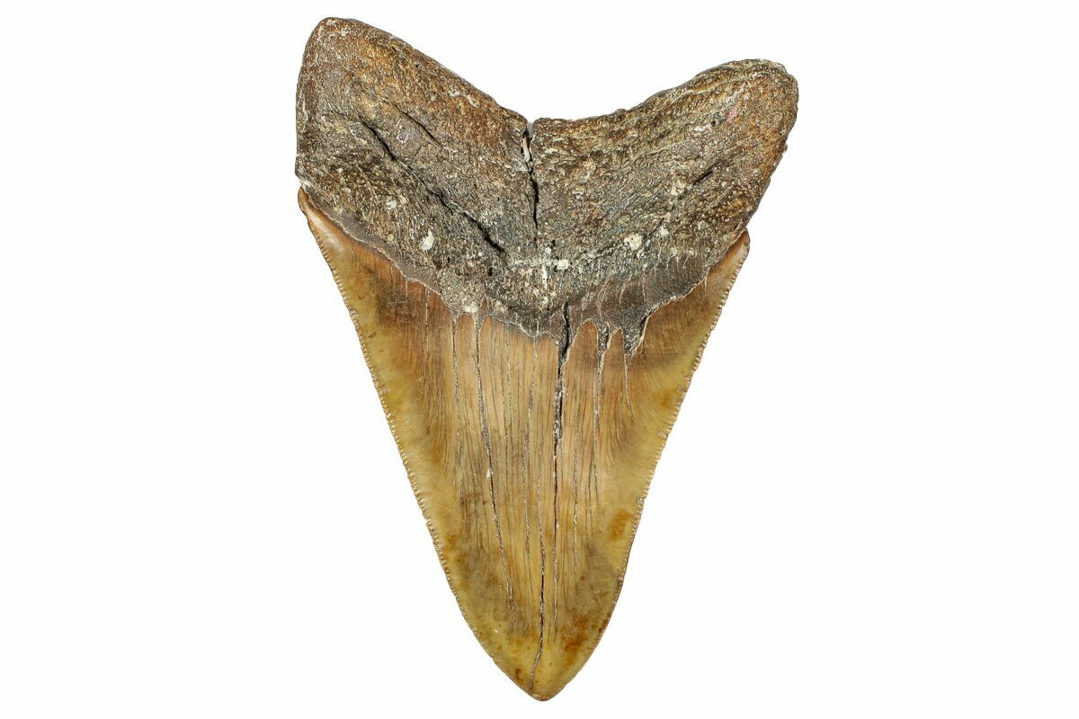 Serrated, 4.90" Fossil Megalodon Tooth - North Carolina