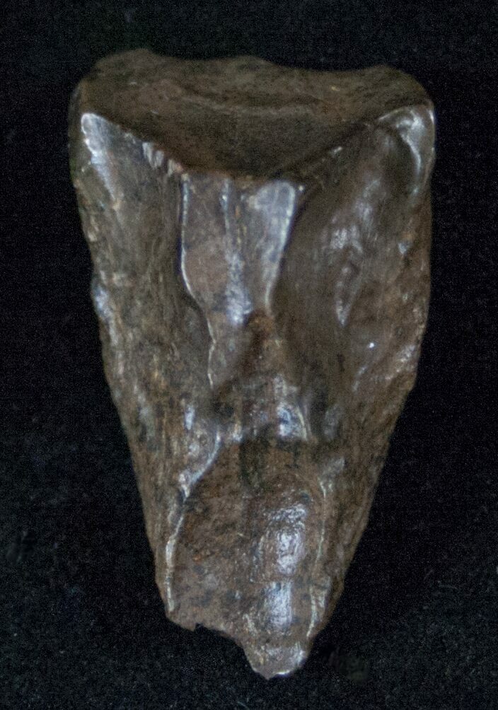 This tooth is a shed tooth or "spitter" and has a polished upper surface indicative of a lot of wear from grinding food. At around an inch long this is quite large for most of the shed teeth that I come across.