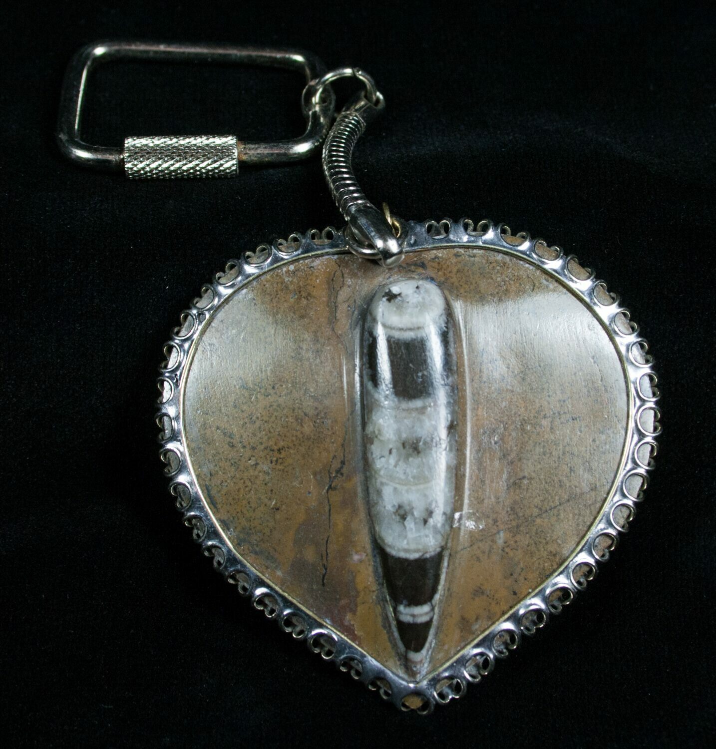 This is a beautiful handcrafted keychain featuring a real, polished, 400 million year old Orthoceras fossil from Morocco.