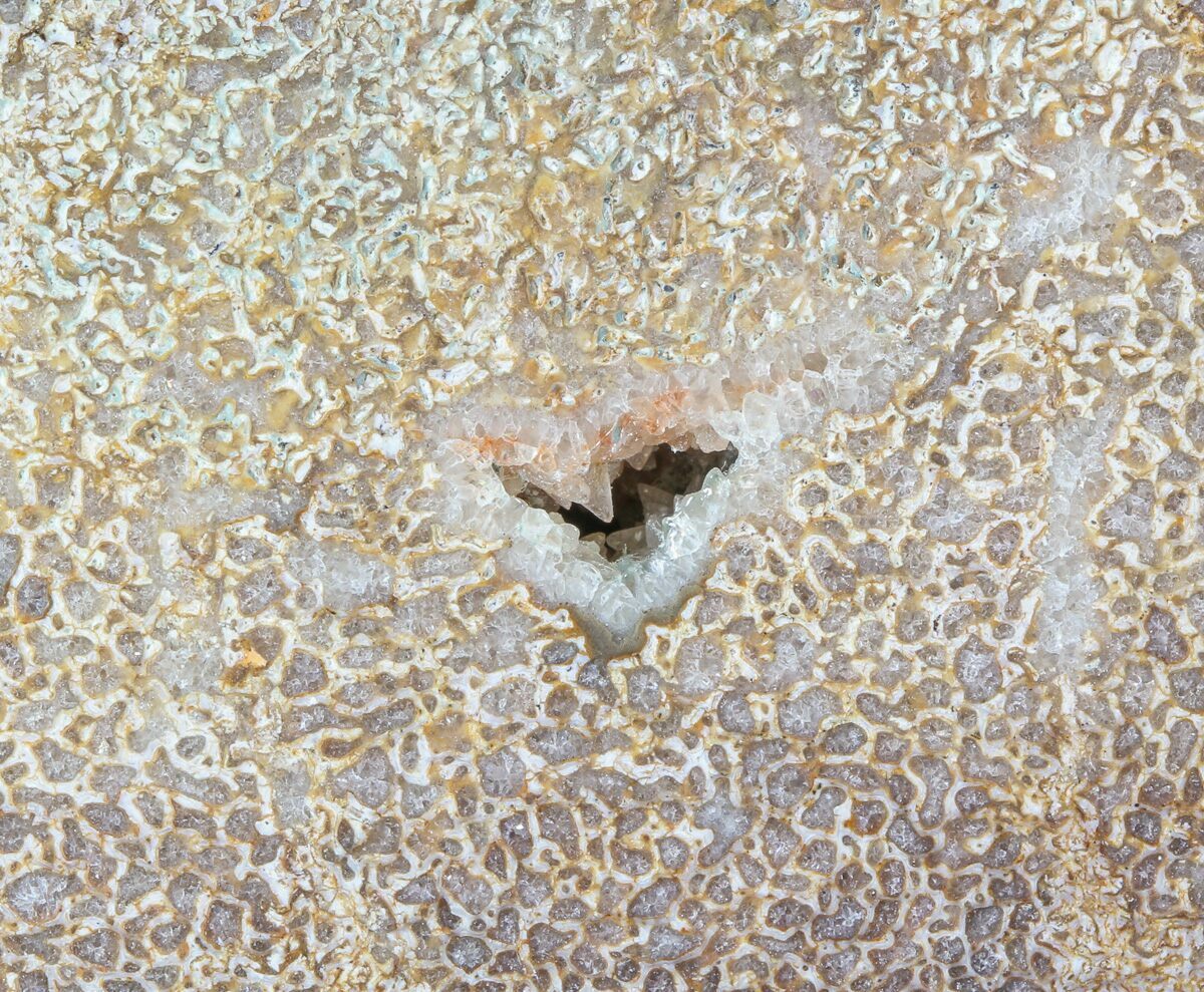 This is a large slab of agatized dinosaur bone that has been polished on both sides to expose the inner cell structure. It has a wonderful red coloration and the cell structure is very well defined. This bone was collected near Bouarfa, Morocco which would encompass the Late Cretaceous, Kem Kem Beds. Based on the size of the cells as other features of the bone slabs it is almost certainly sauropod in origin. There is currently a single described sauropod dinosaur in the formation, the Diplodocoid Rebbachisaurus garasbae.