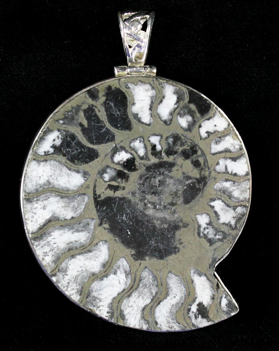 Large Pyritized Ammonite Fossil Pendant - Sterling Silver