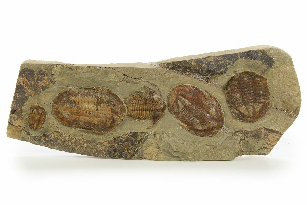 Line of Five Trilobites (3 Species) - Fezouata Formation