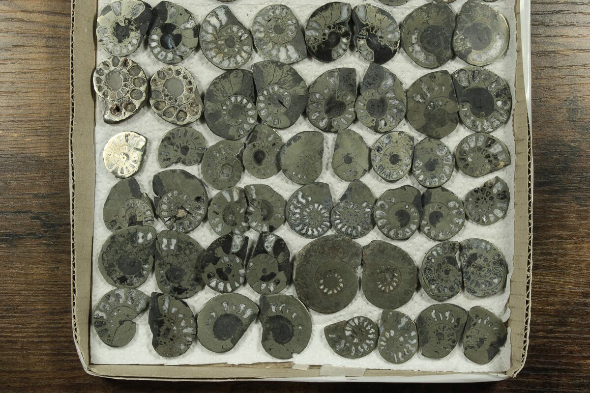Lot: Cut & Polished, Pyrite Replaced Ammonite Pairs - 46 Pairs