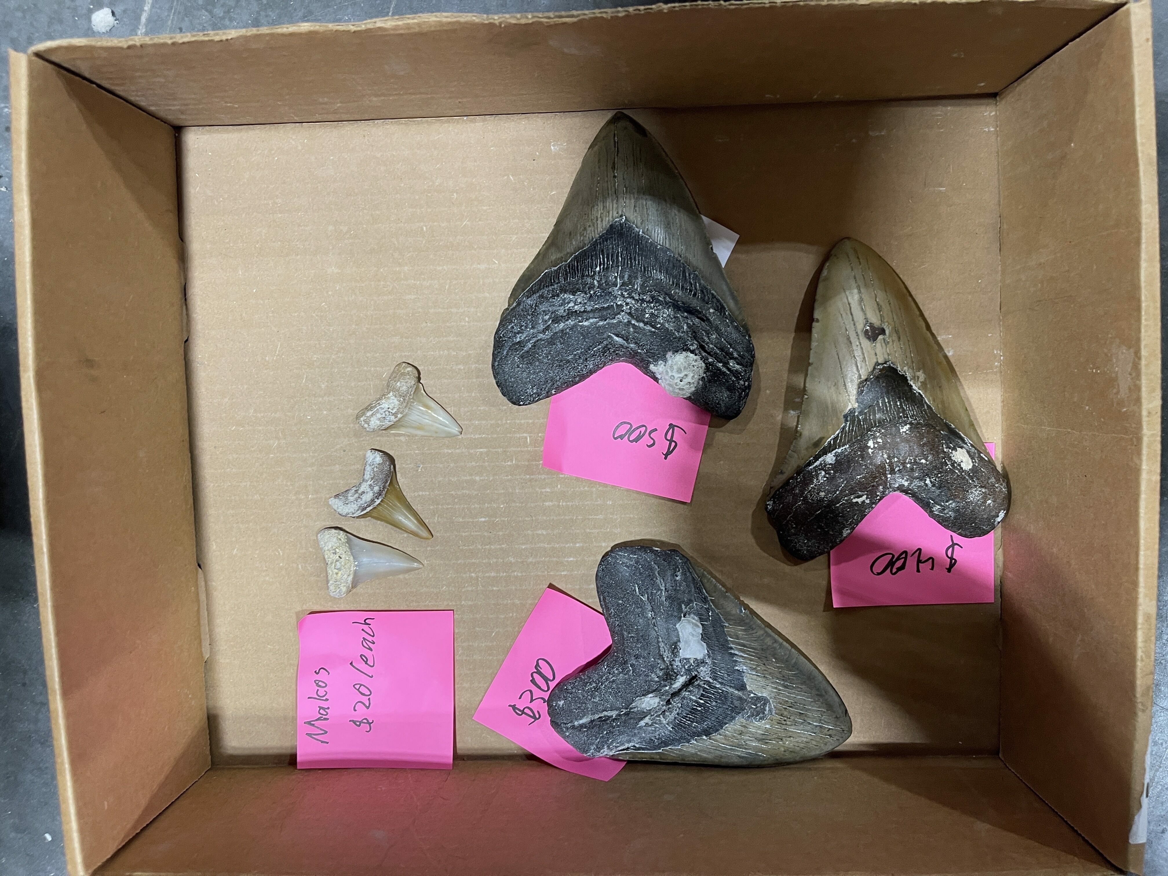 Lot Of 3 Unlisted Megalodon Teeth + Morocco Makos