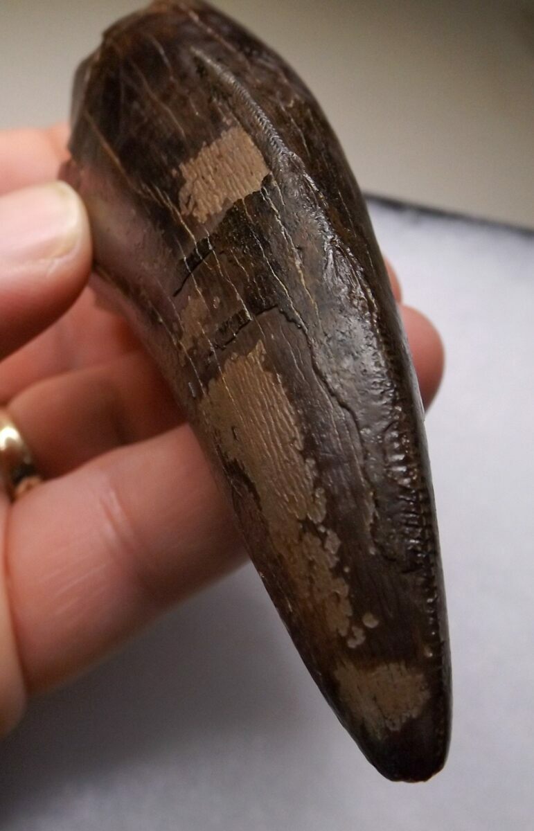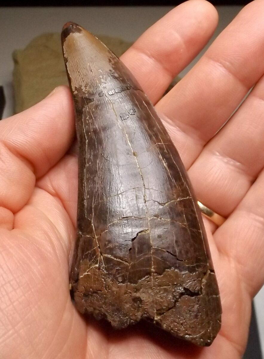 A tooth of this size would have come from a large adult animal, probably around the size of Stan who is 40 feet in length.
