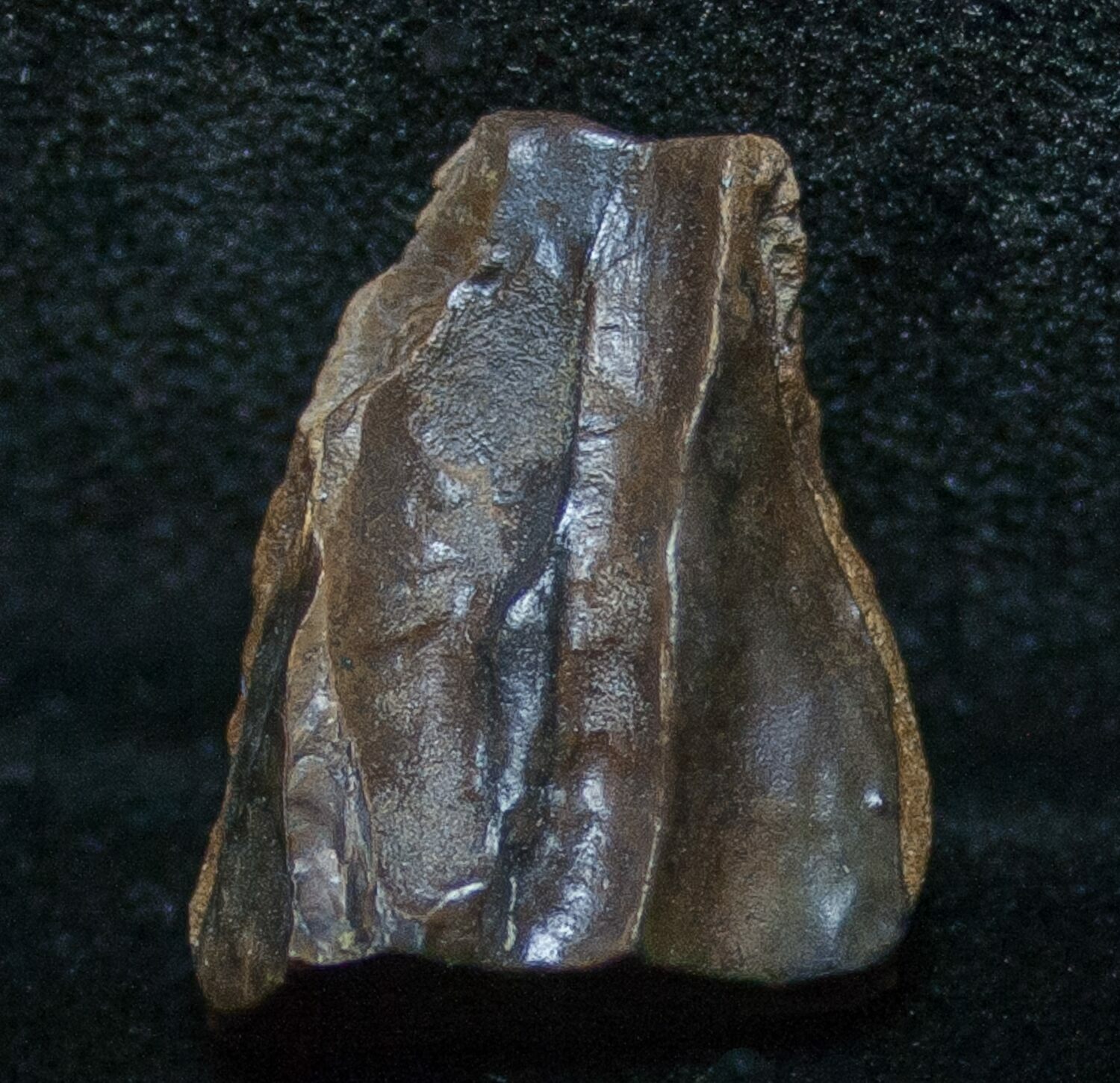 This tooth displays a polished upper surface indicative of a lot of use grinding up food. It's much larger and in nicer shape than most shed teeth.