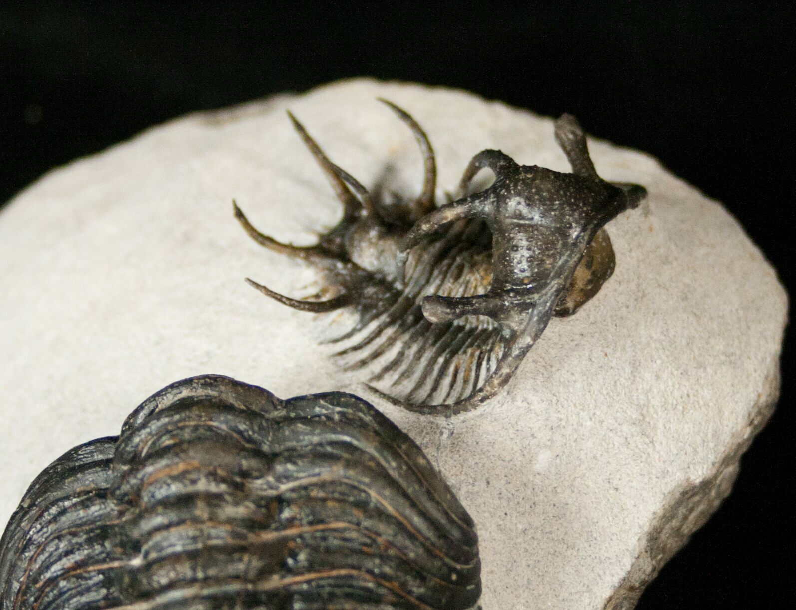 Now this is one alien looking trilobite, it's almost hard to imagine that it was once alive inhabiting our oceans. It's a Ceratarges from the Middle Devonian limestone of Morocco. One can imagine that the large spines may have served as defensive protection against fish that had just begun to develop hardened jaws and likely had trilobites on the dinner menu.
