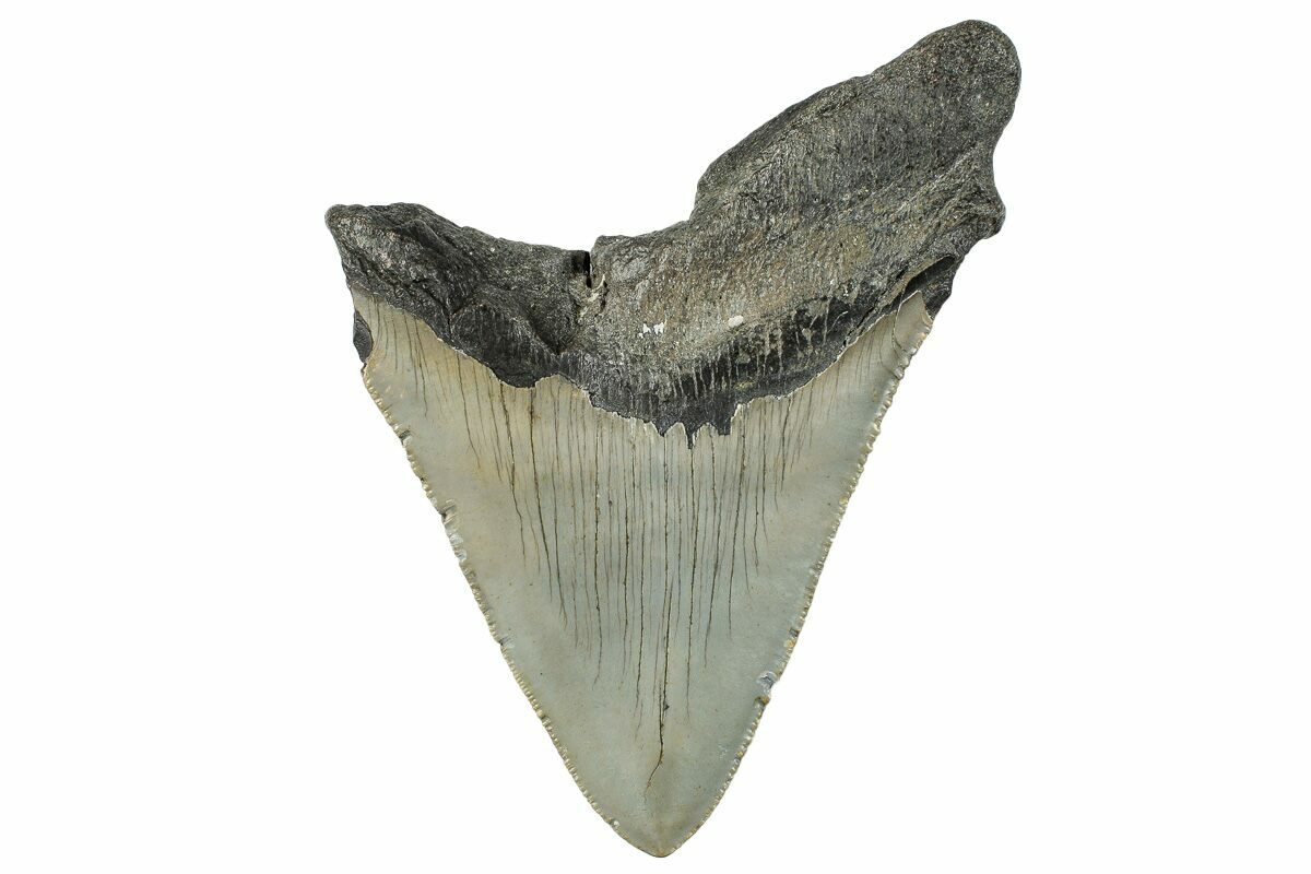 Bargain, 5.00" Fossil Megalodon Tooth - Serrated Blade
