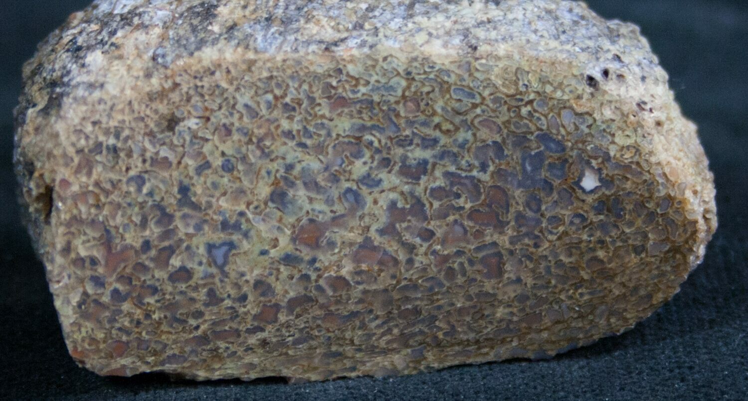 It comes from the Morrison formation of Colorado. The agatized bone is either found as fragments on the surface from bones or partial bones that have long since been destroyed by exposure to the elements, or as broken and tumbled chunks in event layers of the quarry. It could have come from any of a number of dinosaurs from this formation, though sometimes based on cell size and outer appearance the type can be narrowed down.