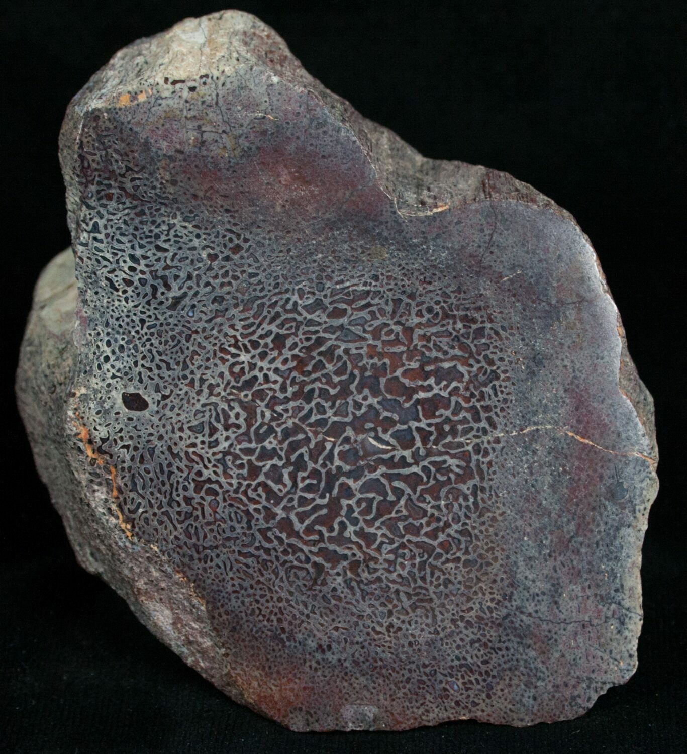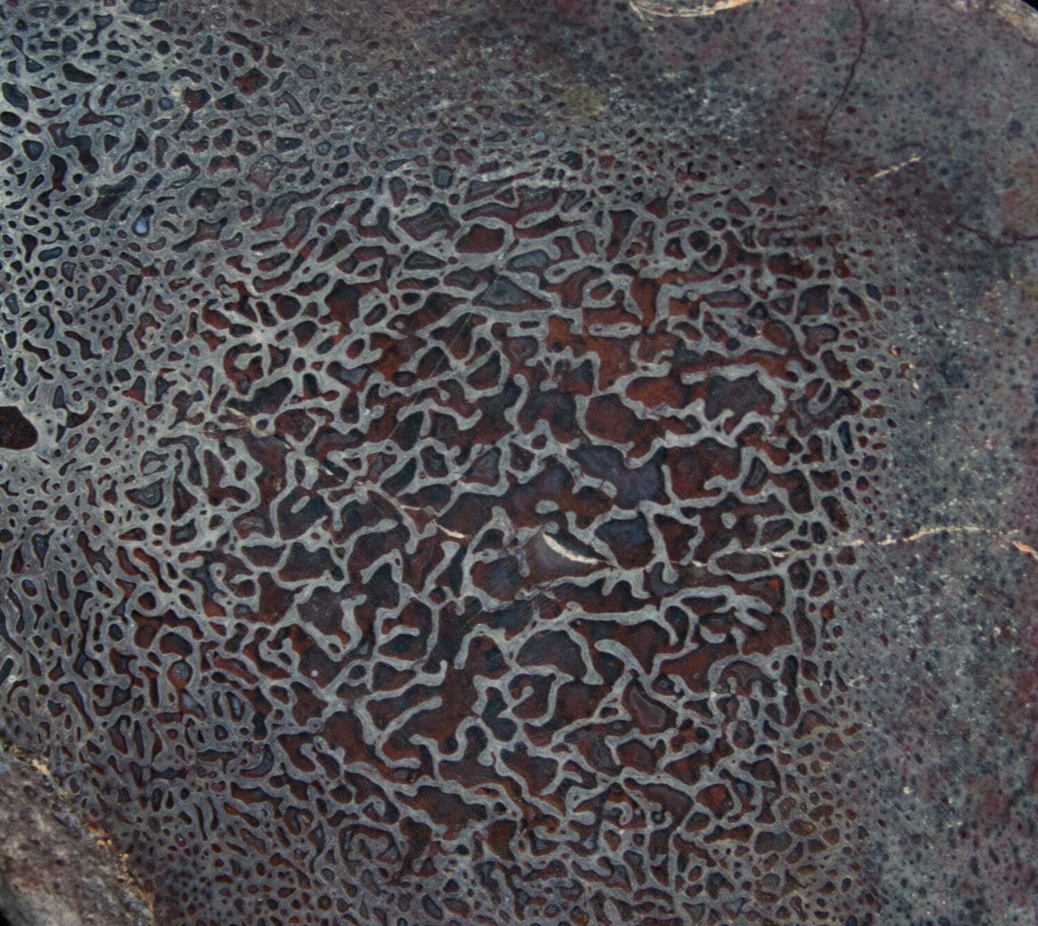 This is a beautiful piece of agatized dinosaur bone where one face has been cut and polished to reveal the wonderful internal cell structure. This piece has excellent, large cell structure and is higher quality than most being sold. The polished face is 3" x 2.3" and it weighs 8oz.