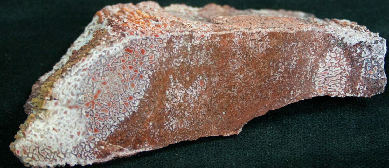 Agatized dinosaur bone is a rare form of fossilized dinosaur bone where the original fossilized bone has been re-mineralized (replaced) with silica based compounds (agate, jasper, chalcedony, or opal).