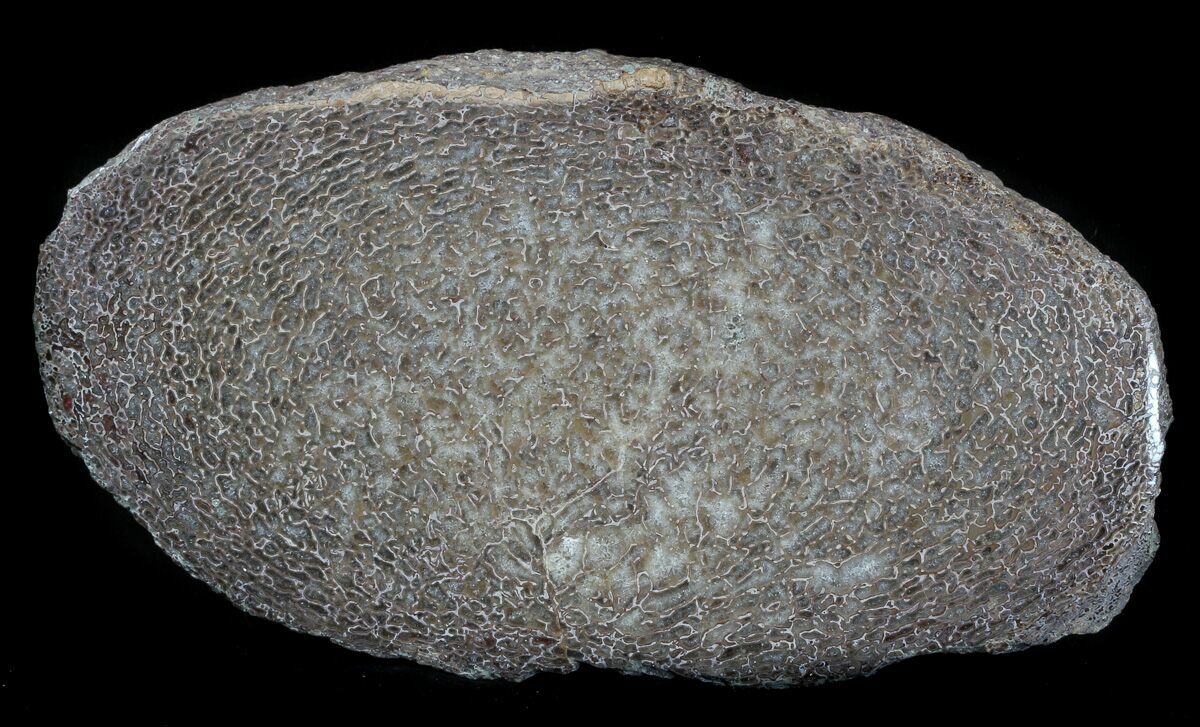 This is a beautiful slab of agatized dinosaur bone that has been polished on both sides to expose the inner cell structure. It has a wonderful red coloration and the cell structure is very well defined. This bone was collected near Bouarfa, Morocco which would encompass the Late Cretaceous, Kem Kem Beds. Based on the size of the cells as other features of the bone slabs it is almost certainly sauropod in origin. There is currently a single described sauropod dinosaur in the formation, the Diplodocoid Rebbachisaurus garasbae.