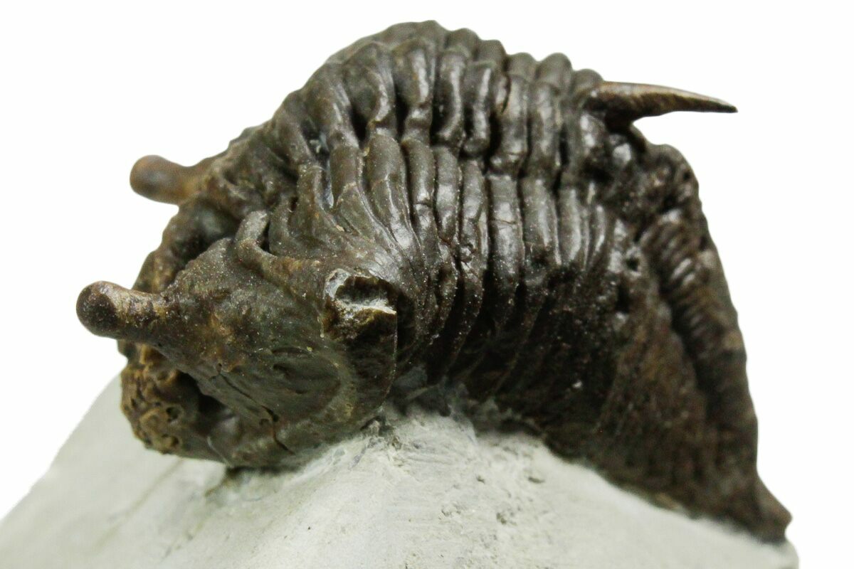This is a rare British trilobite offering from Malvern, England. It's a 1.2" long (if oustretched) Silurian-aged, Encrinurus tuberculata. These trilobites are found in hard limestone nodules and are very tough and time consuming to prepare. This specimen isn't perfect, but you rarely see one of these specimens come up for sale.