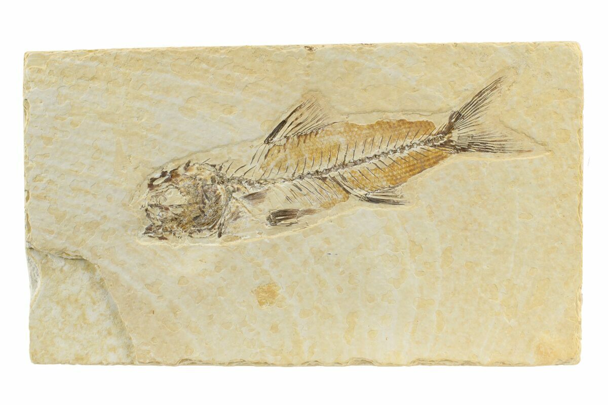 This is a beautifully preserved, 3.5" long Amphiplaga fossil. Amphiplaga brachyptera are one of the rarer fish in the Green River Formation, making up much less than 1% of the total fish population. It's a small fish and is a member of the "trout-perch" family. Because of its rarity it was almost certainly solitary, not a schooling fish like the more common species found in the lake.
