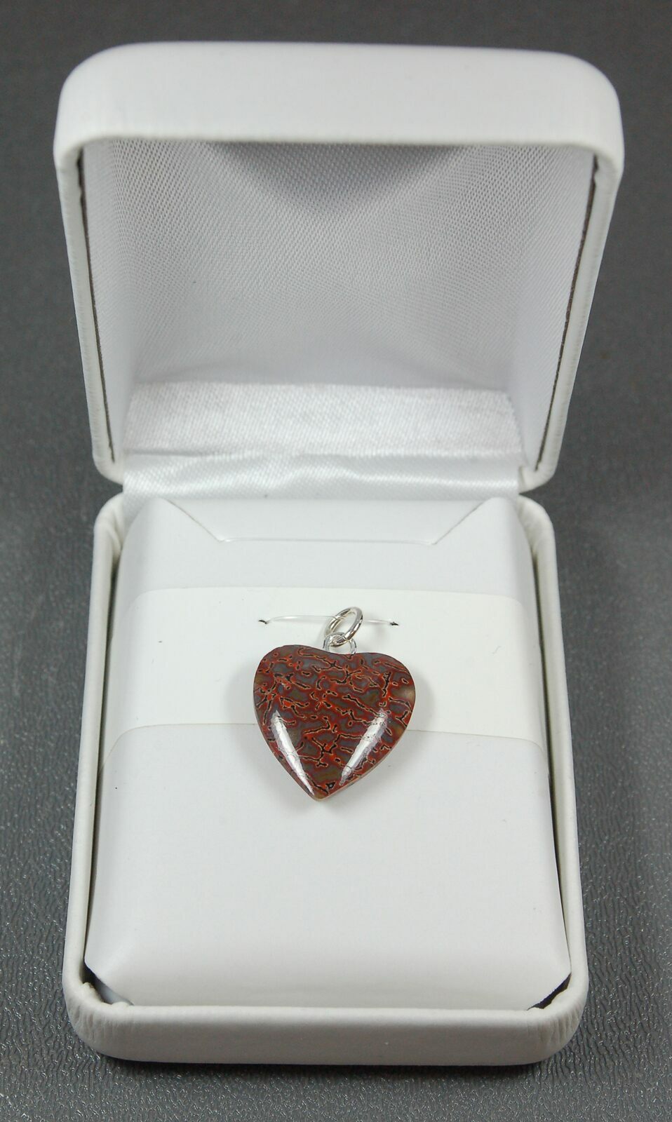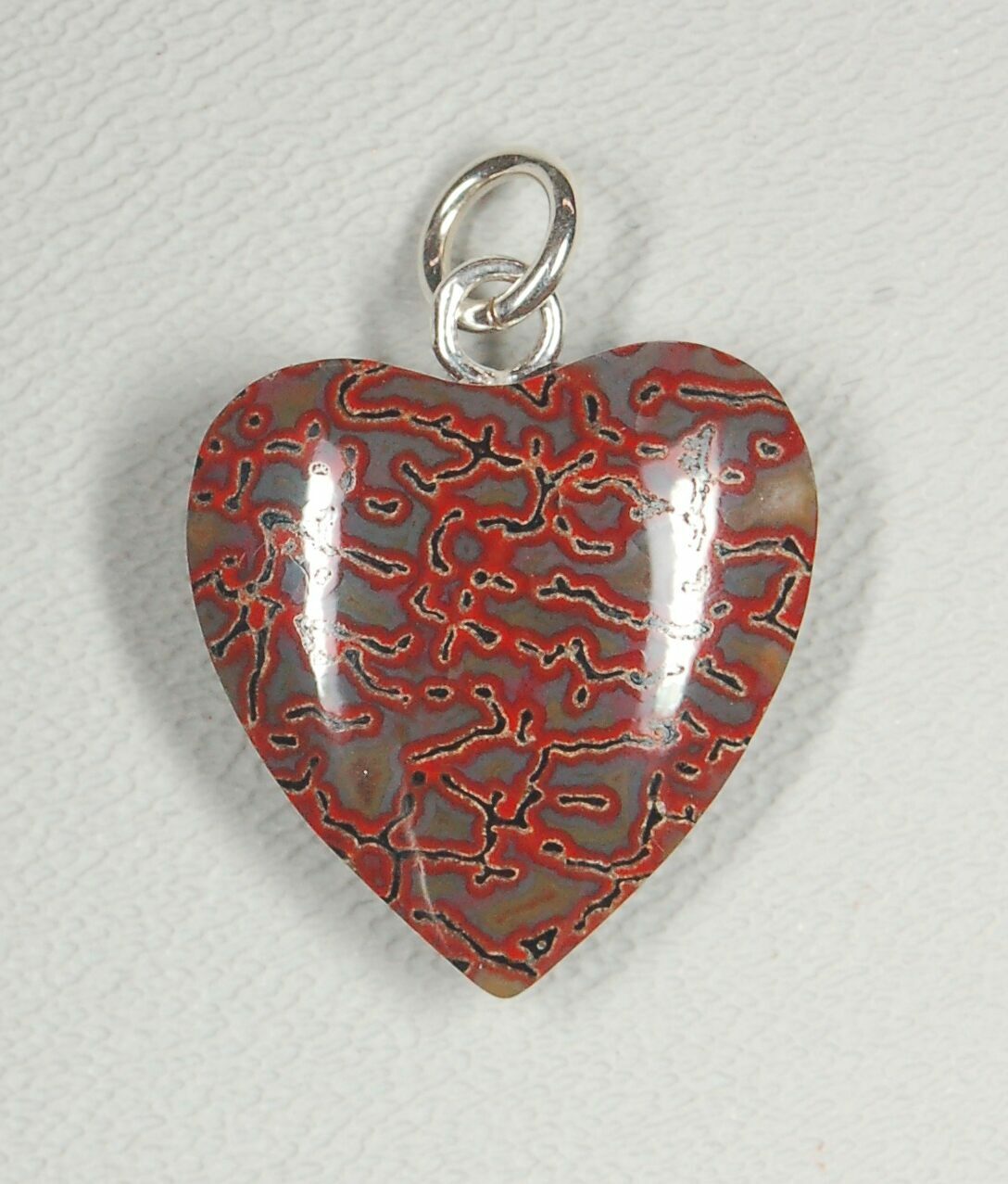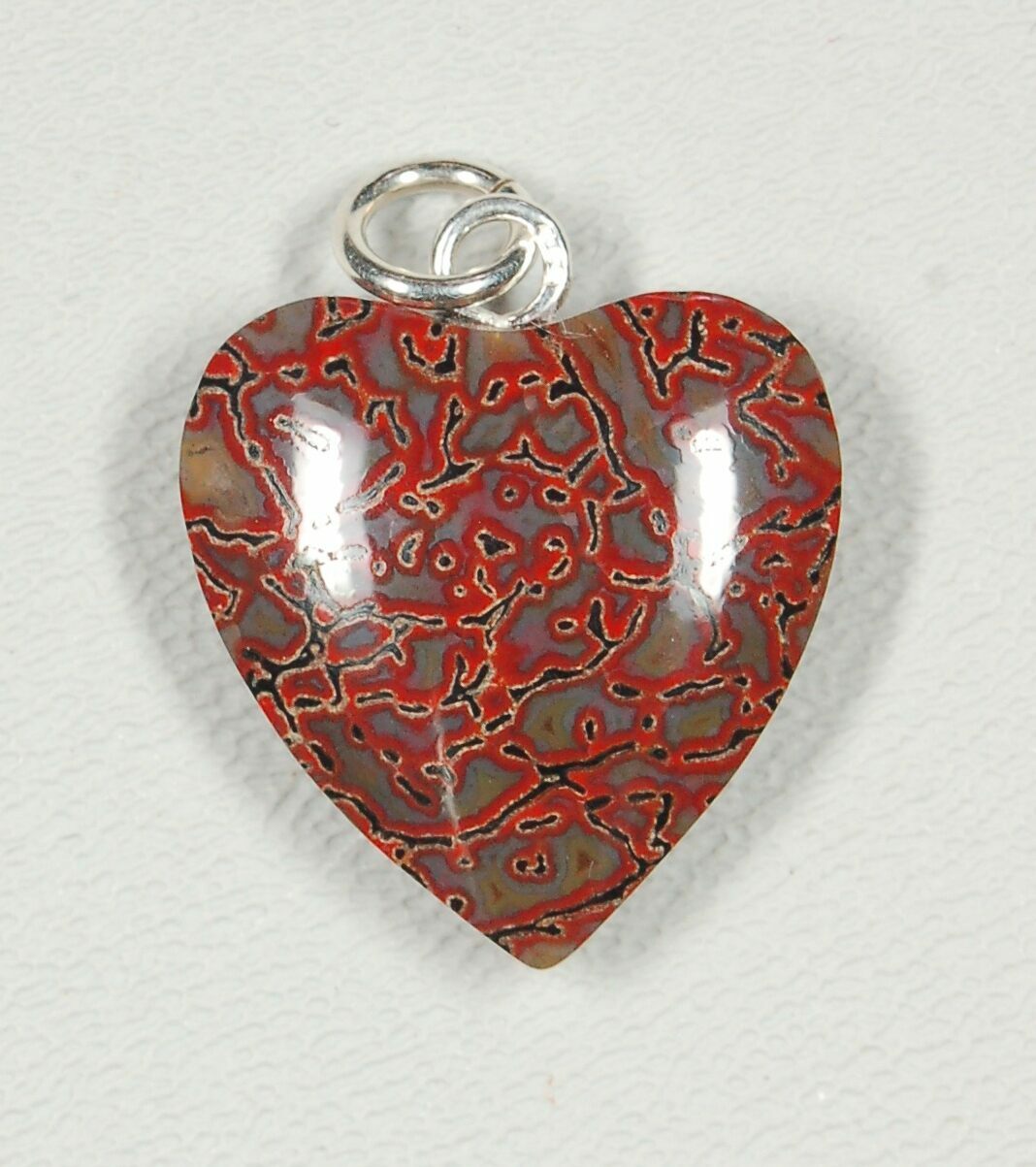 Red Heart, Agatized Dinosaur Bone (Gembone) Pendant