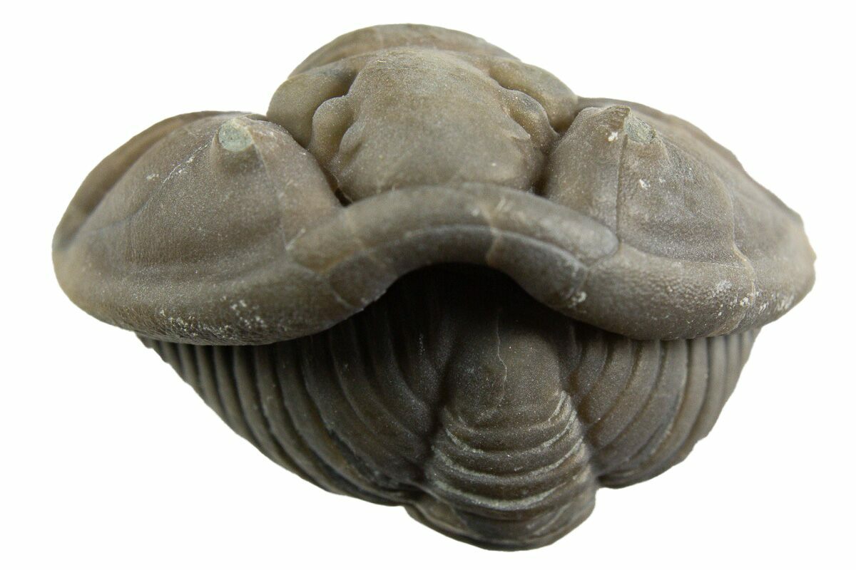 Flexicalymene is often found enrolled, seemingly to protect its softer underside from threats on a sea floor teeming with ancient life and increasingly complex predators. Sealing itself inside the hard carapace may be a protective maneuver, or it may simply be the pose of death.