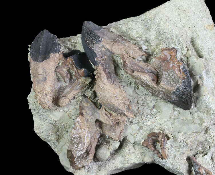 Five Rooted Triceratops Teeth in Sandstone - South Dakota