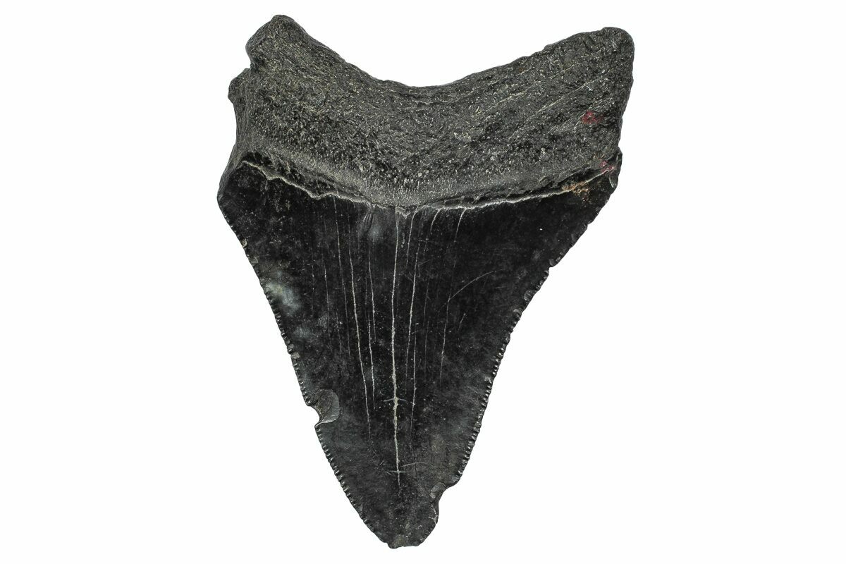 The standard measure for megalodon teeth is slant height, or the longest edge of the tooth. Adult megalodon teeth were typically in the 4 to 5 inch range: teeth over 6 inches are rare and represent super-sized individuals. Only a handful of teeth have ever been found over seven inches.