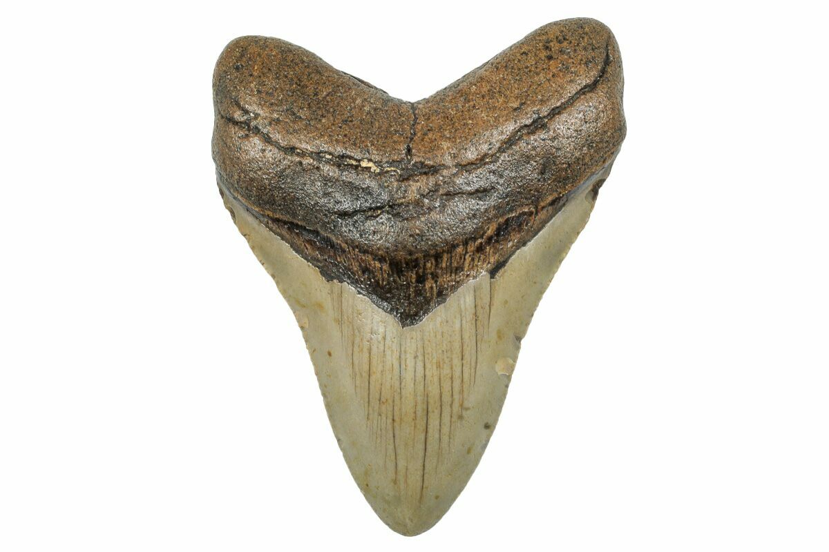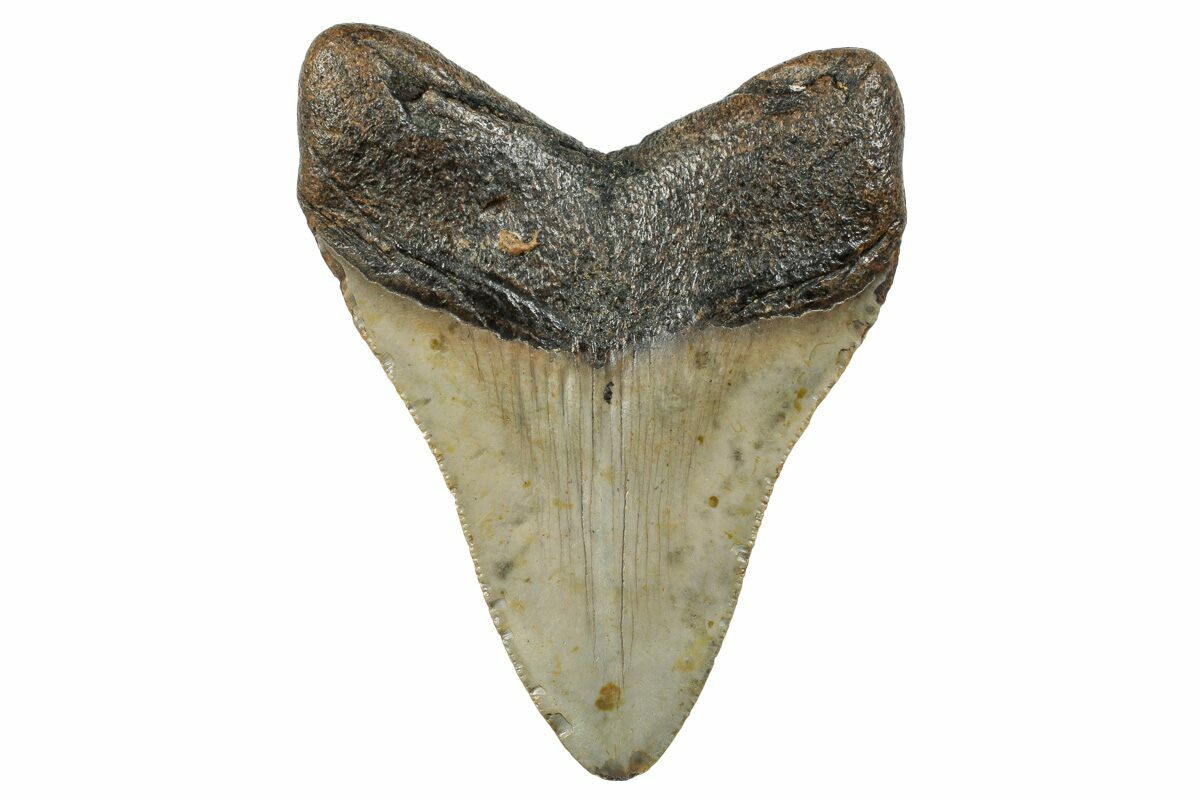 Serrated, 3.39" Fossil Megalodon Tooth - North Carolina