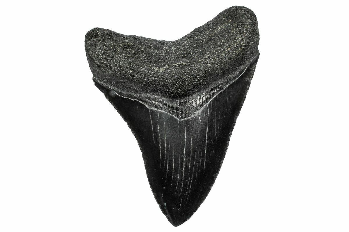 The standard measure for megalodon teeth is slant height, or the longest edge of the tooth. Adult megalodon teeth were typically in the 4 to 5 inch range: teeth over 6 inches are rare and represent super-sized individuals. Only a handful of teeth have ever been found over seven inches.