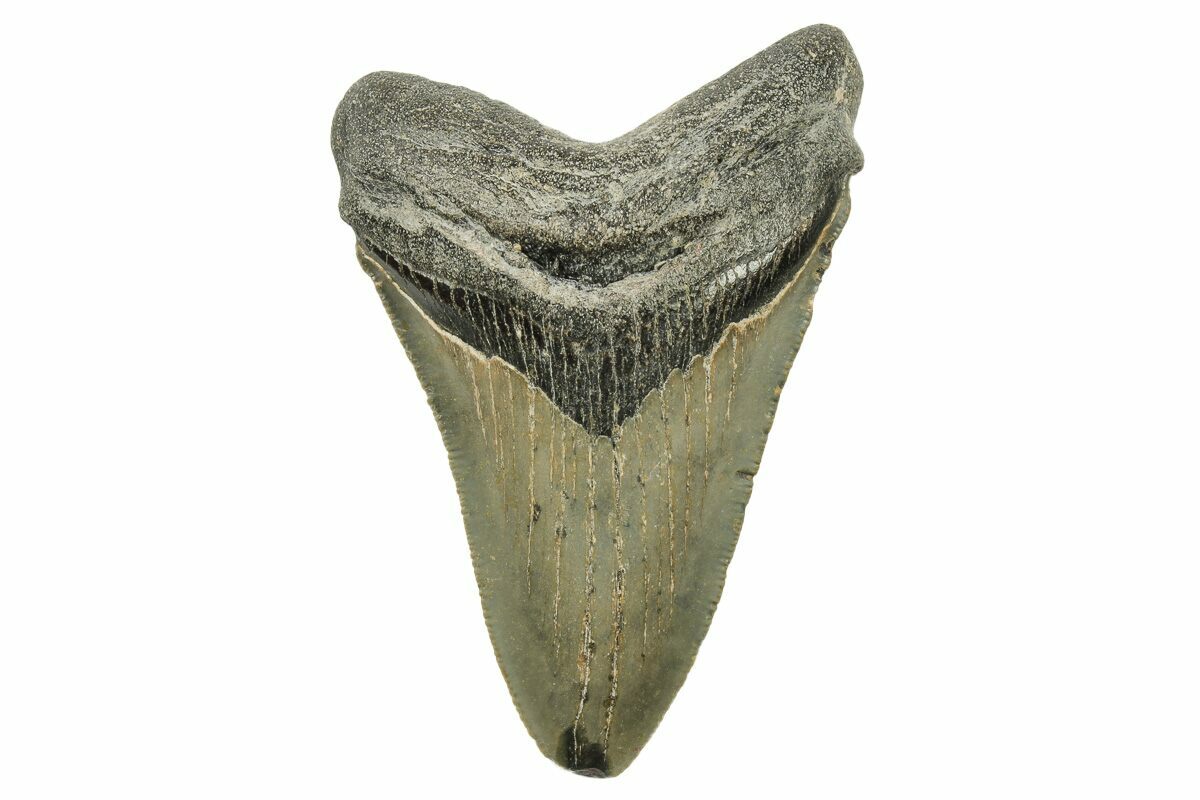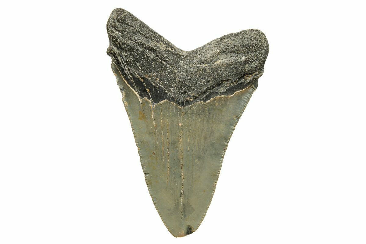 Serrated, 3.60" Fossil Megalodon Tooth - North Carolina