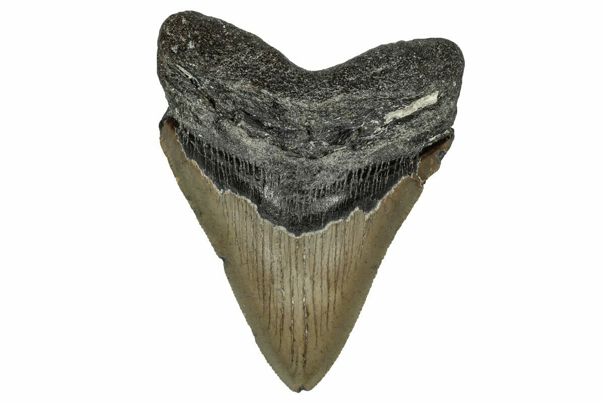 Serrated, 3.62" Fossil Megalodon Tooth - North Carolina