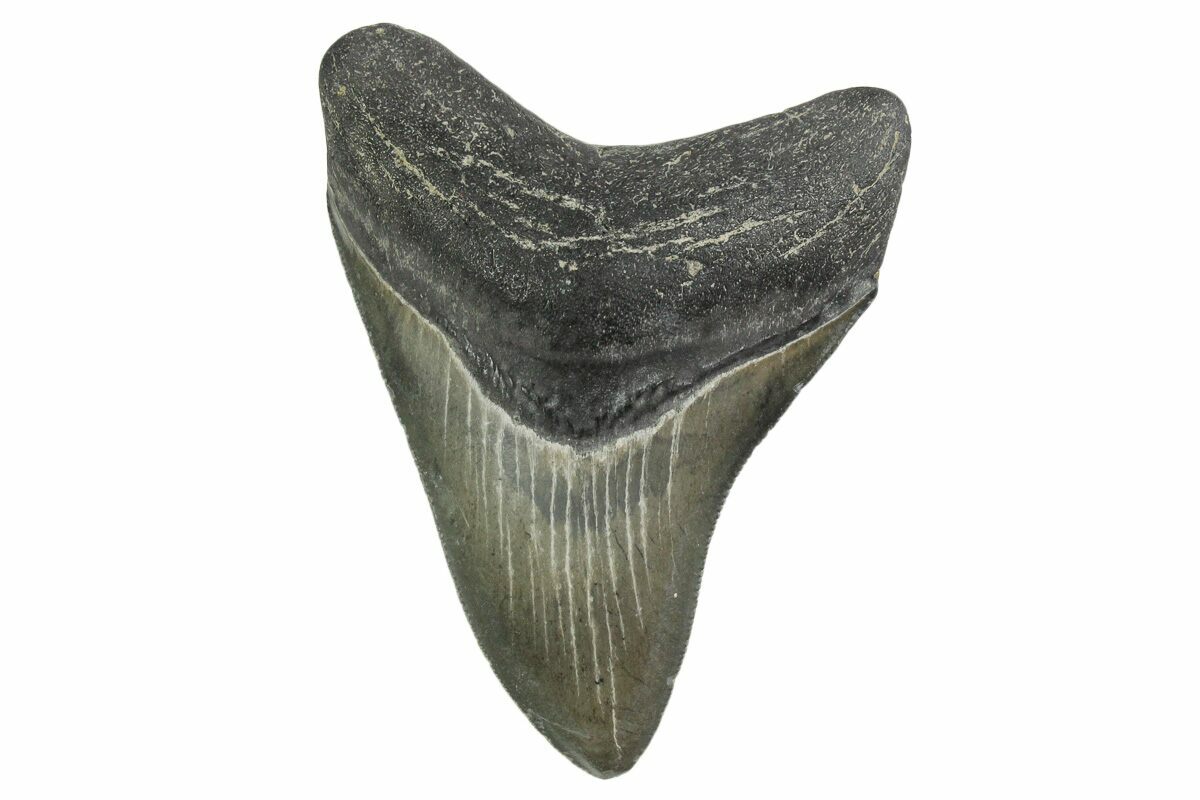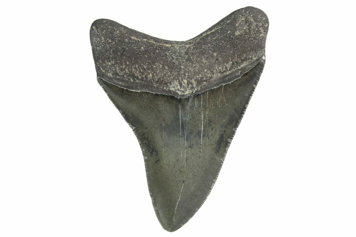 The standard measure for megalodon teeth is slant height, or the longest edge of the tooth. Adult megalodon teeth were typically in the 4 to 5 inch range: teeth over 6 inches are rare and represent super-sized individuals. Only a handful of teeth have ever been found over seven inches.