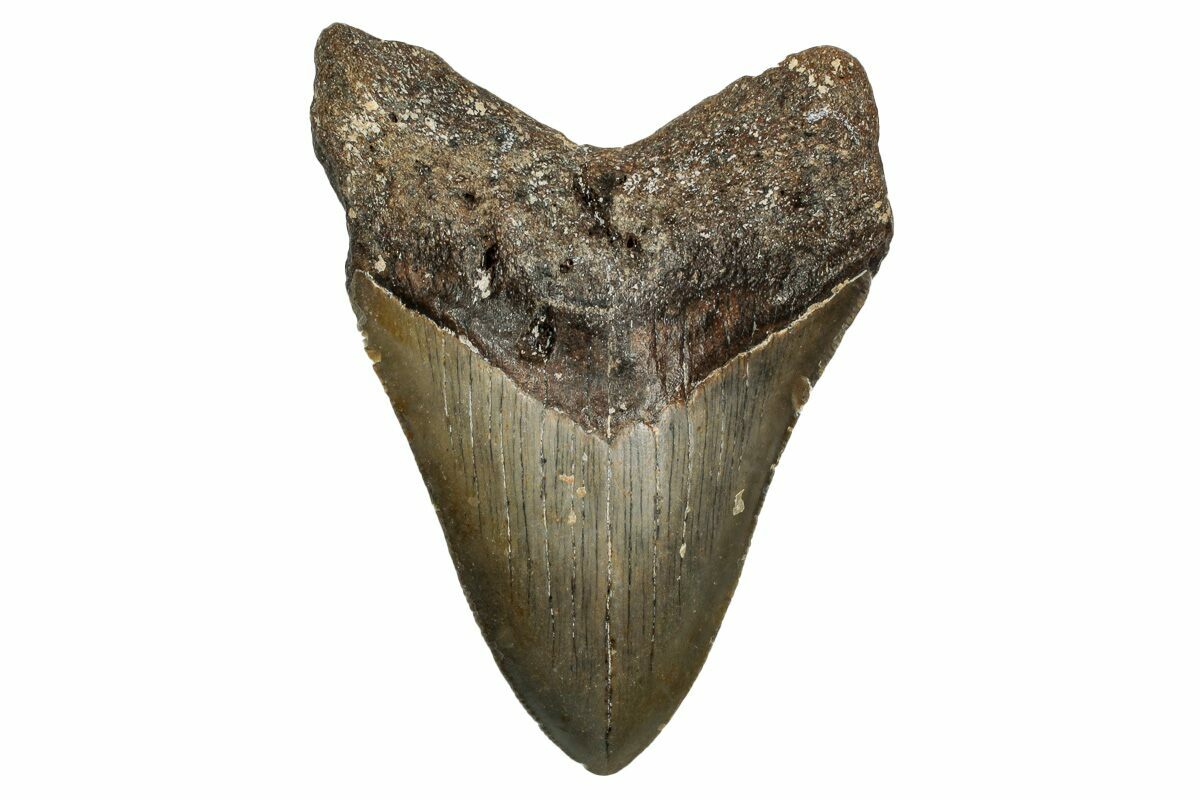 Serrated, 3.80" Fossil Megalodon Tooth - North Carolina