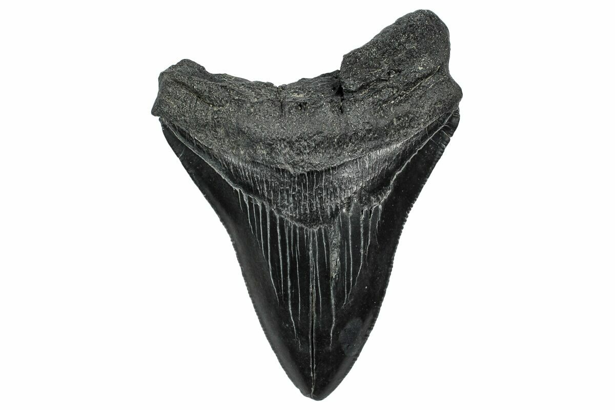 Serrated, 3.80" Fossil Megalodon Tooth - South Carolina