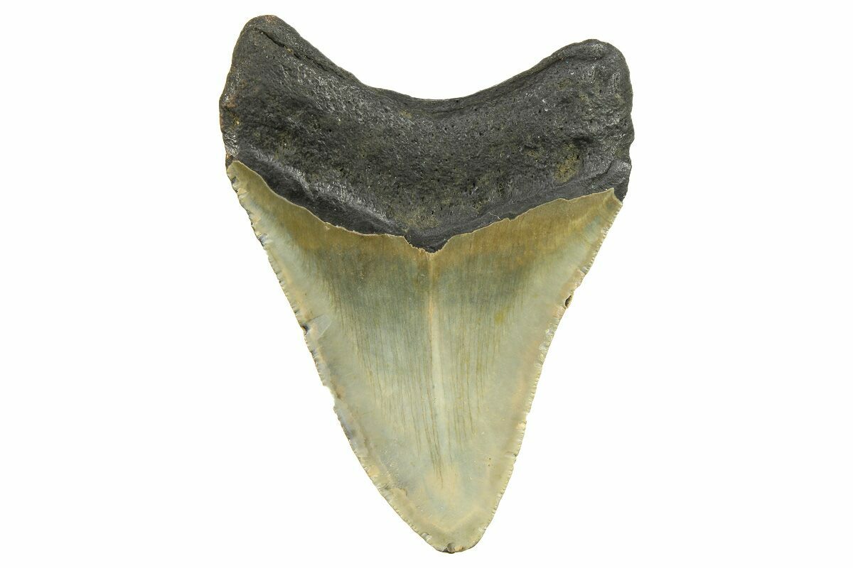 Serrated, 3.84" Fossil Megalodon Tooth - North Carolina