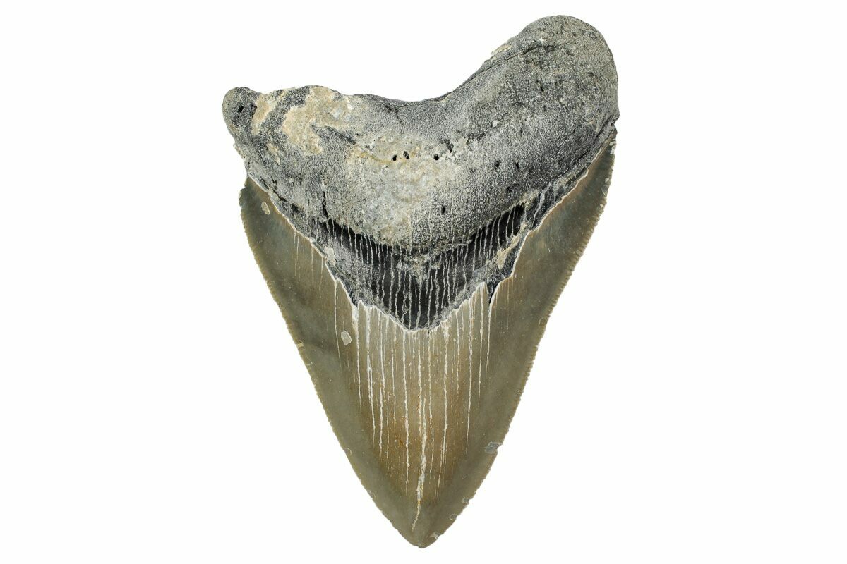 Serrated, 3.86" Fossil Megalodon Tooth - North Carolina