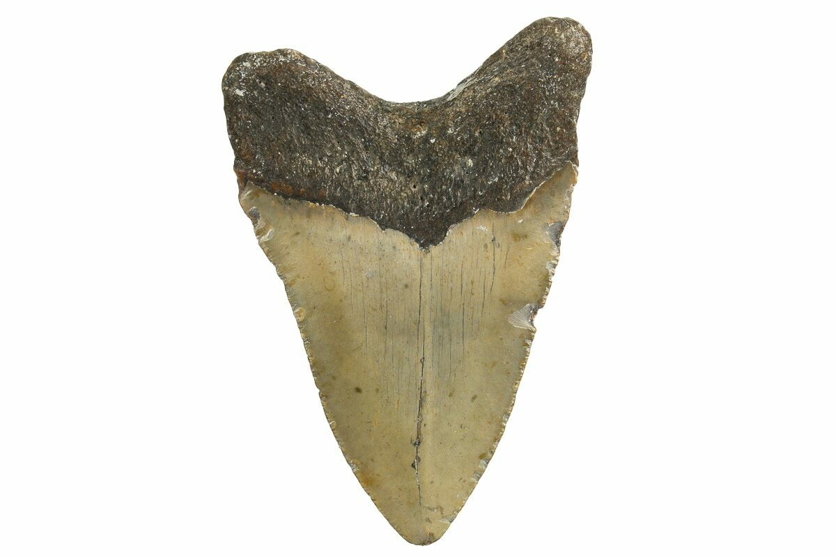 Serrated, 3.88" Fossil Megalodon Tooth - North Carolina
