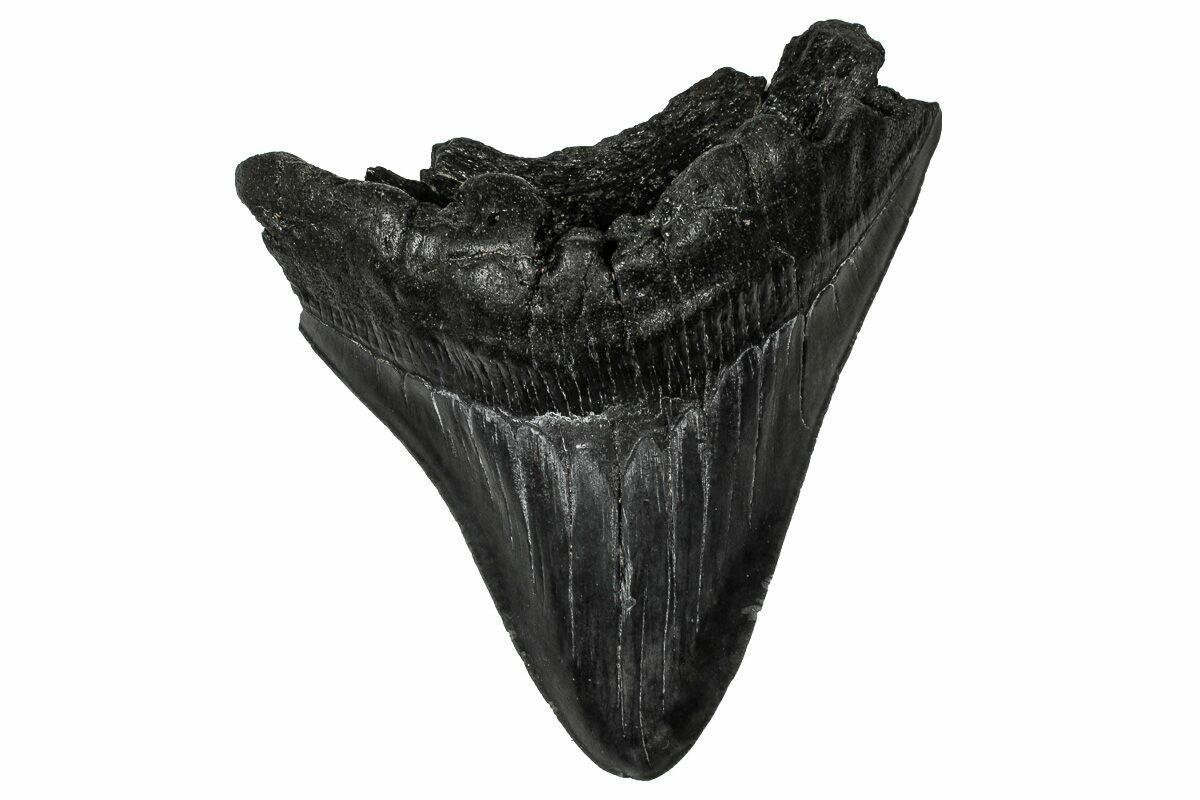 This is a 3.95" long, fossil megalodon tooth collected in South Carolina. The tooth would have come from an adult, prehistoric, mega-shark in the 35+ foot size range.