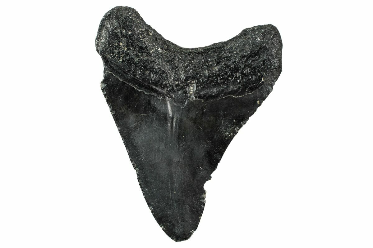 The standard measure for megalodon teeth is slant height, or the longest edge of the tooth. Adult megalodon teeth were typically in the 4 to 5 inch range: teeth over 6 inches are rare and represent super-sized individuals. Only a handful of teeth have ever been found over seven inches.