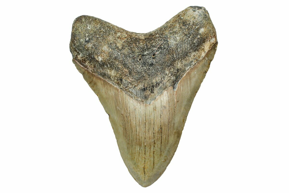 Serrated, 4.01" Fossil Megalodon Tooth - North Carolina