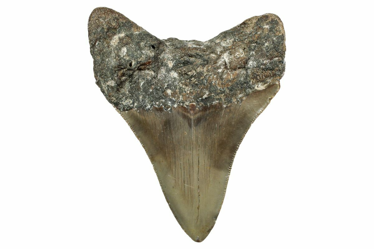 Serrated, 4.02" Fossil Megalodon Tooth - North Carolina
