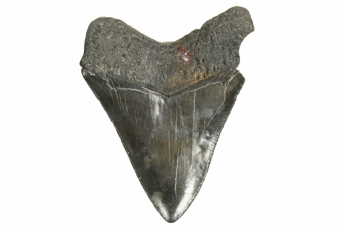 Megalodon had a cosmopolitan (global) distribution and its giant teeth can be found in deposits throughout the world. Some are collected on land in phosphate deposits, while many are collected from rivers and coastlines after eroding out of the rocks. This contributes to the water-worn, polished appearance of many teeth.
