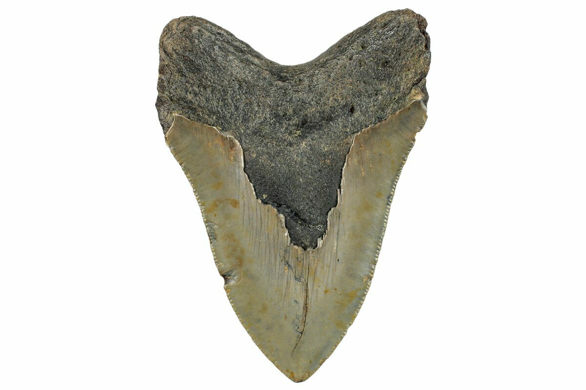 Serrated, 4.05" Fossil Megalodon Tooth - North Carolina
