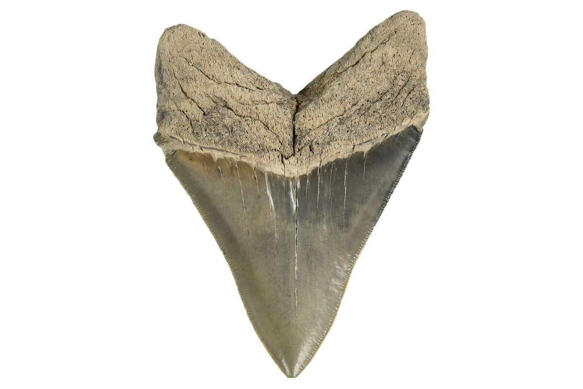 Megalodon had a cosmopolitan (global) distribution and its giant teeth can be found in deposits throughout the world. Some are collected on land in phosphate deposits, while many are collected from rivers and coastlines after eroding out of the rocks. This contributes to the water-worn, polished appearance of many teeth.