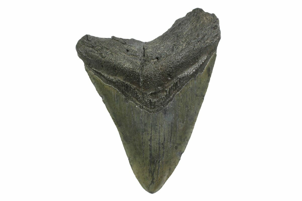 The standard measure for megalodon teeth is slant height, or the longest edge of the tooth. Adult megalodon teeth were typically in the 4 to 5 inch range: teeth over 6 inches are rare and represent super-sized individuals. Only a handful of teeth have ever been found over seven inches.