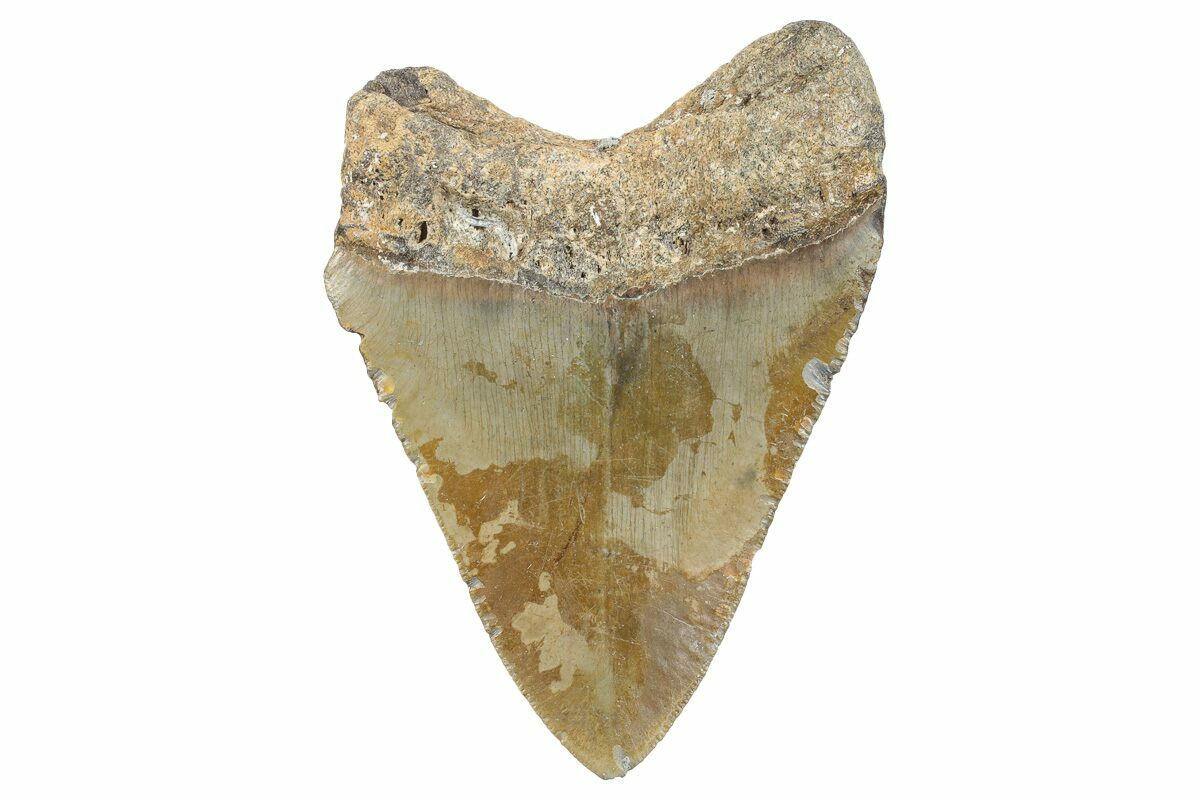 Megalodon had a cosmopolitan (global) distribution and its giant teeth can be found in deposits throughout the world. Some are collected on land in phosphate deposits, while many are collected from rivers and coastlines after eroding out of the rocks. This contributes to the water-worn, polished appearance of many teeth.