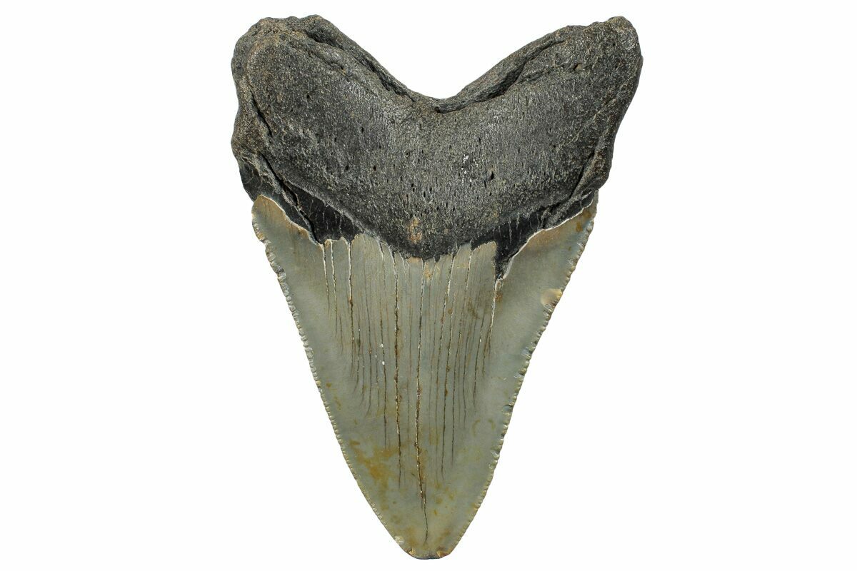 Serrated, 4.33" Fossil Megalodon Tooth - North Carolina