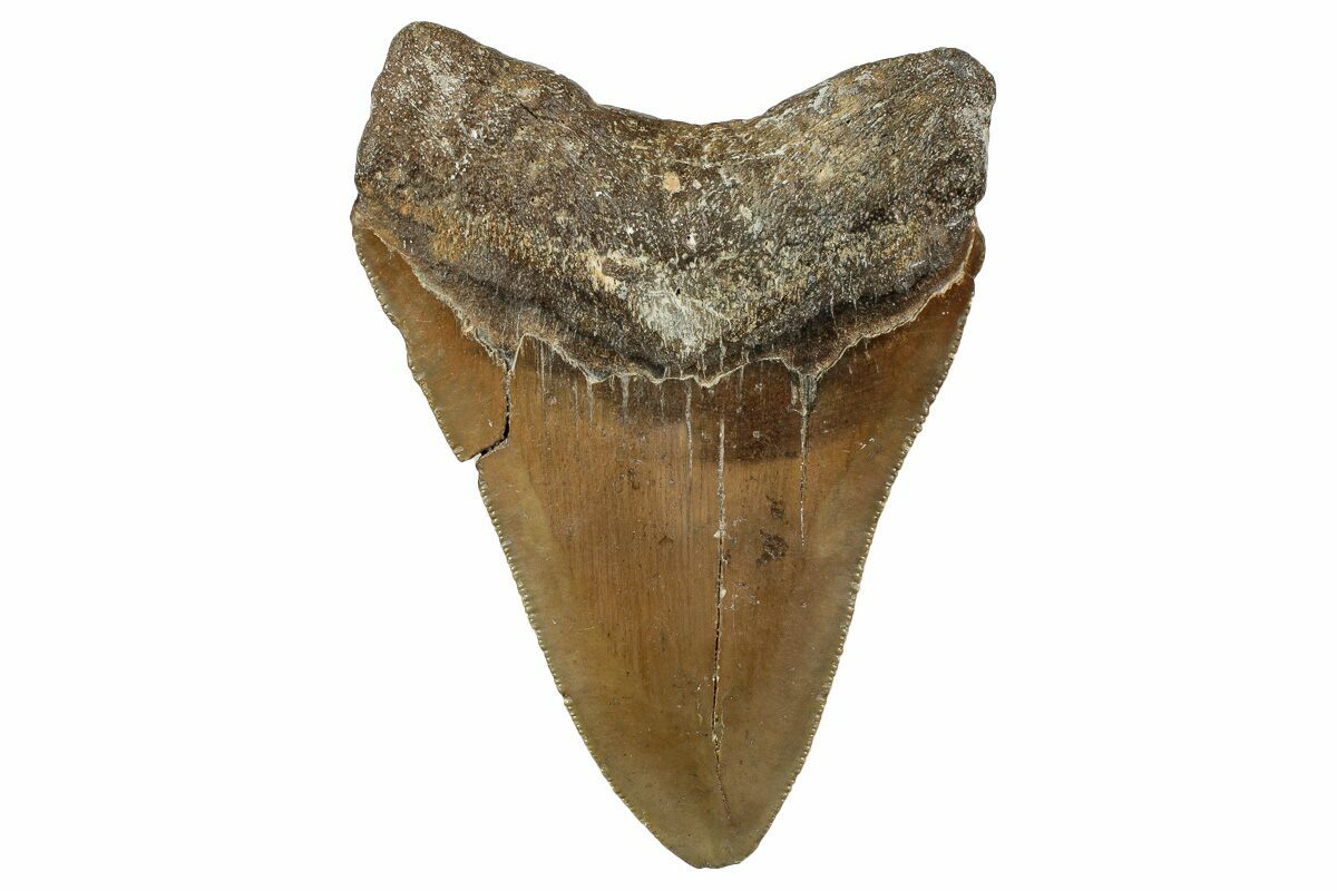 Megalodon had a cosmopolitan (global) distribution and its giant teeth can be found in deposits throughout the world. Some are collected on land in phosphate deposits, while many are collected from rivers and coastlines after eroding out of the rocks. This contributes to the water-worn, polished appearance of many teeth.
